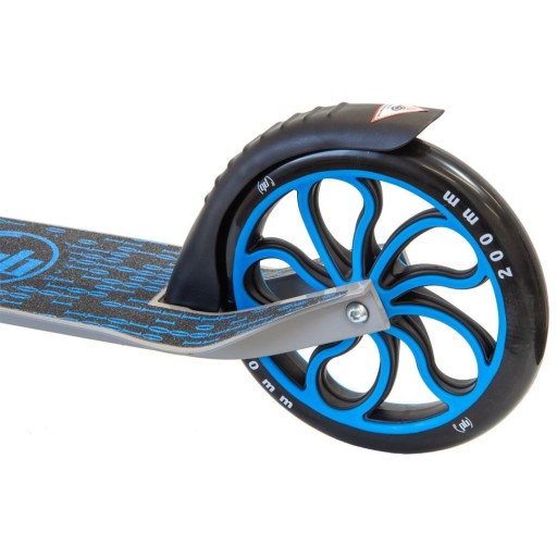 Самокат виготовлений з дуже міцного і легкого алюмінієвого сплаву. Протиковзкий шар під ніжками і міцні колеса на шарикопідшипниках забезпечують швидкість і безпеку одночасно. Гальмо крила швидко зупинить скутер, коли вам це потрібно.