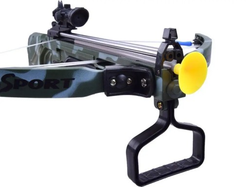 Арбалет має лазерний приціл, який полегшить попадання в ціль. Ще однією перевагою іграшки є зручна підставка для ніг, яка дозволяє ефективно натягувати гумку. Все це зроблено дуже ефектно з якісних матеріалів. Арбалет також має функцію безпеки, просто переведіть важіль збоку приклада в положення ВИМК. Безпечні стріли мають присоску на кінці.