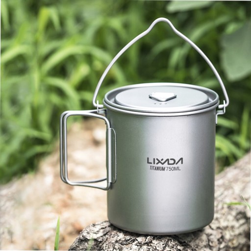 Набір із 3 предметів: повний титановий набір включає глечик на 750 мл, кухоль на 420 мл і складну ложку, ідеально підходить для кемпінгу, походів, подорожей, пригод на природі та виживання.