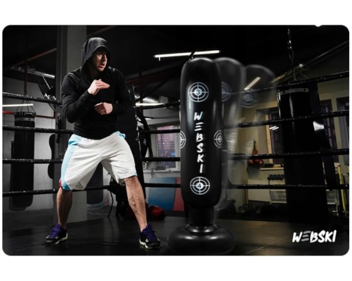 Наповнений повітрям боксерський мішок дуже легкий і реагує на будь-який удар, але зважена водою основа стабілізує його на місці. Кожен удар приводить сумку в рух, повітря всередині швидко повертає сумку у вертикальне положення!