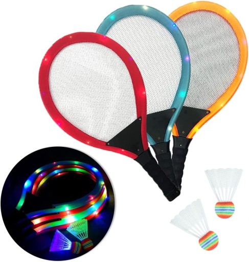 НАБІР РАКЕТОК ЗІ СВІТЛИВИМ КІЛЬЦЕМ + 2 БАДМІНТОНСЬКІ ЖАЛЮРИ