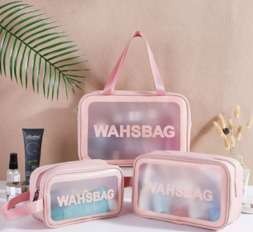 ЖІНОЧА ВОДОНЕПРОХОДНА ДОРОЖНЯ КОСМЕТИЧКА РОЖЕВА ПРОЗОРА НАБІР X3