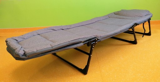 Розкладна кушетка з м'яким матрацом також оснащена кишенею для дрібниць, розташованої з правого боку біля узголів'я. Для каркаса використовується міцна сталева труба.