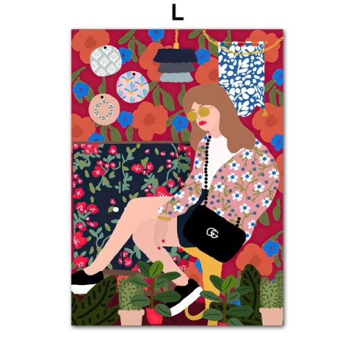 Тропічна кольорова дівчина. Автомобіль. Квітка. Коала. Леопард. Настінне зображення