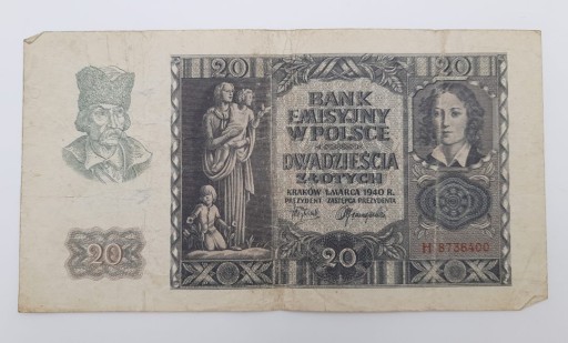 Стара колекційна банкнота Польща 20 злотих 1940 р