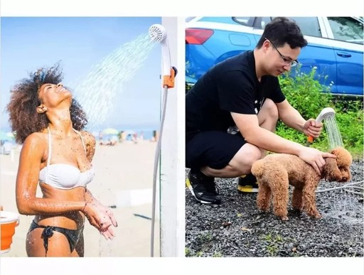 💦 【Легкий і портативний】: цей кемпінговий душ дуже легкий, компактний і його легко носити. Чудово підходить для активного відпочинку та подорожей. Якщо ви в кемпінгу, на велосипеді, за кермом автомобіля або в саду, ви можете використовувати його будь-коли. Він не займає багато місця і легко поміщається у валізу чи рюкзак, завдяки чому його легко носити.