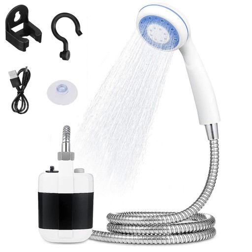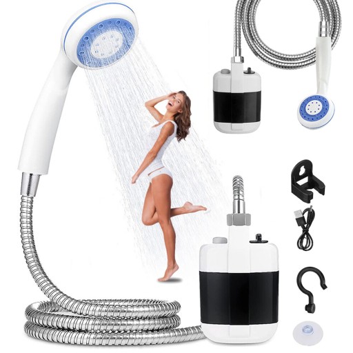 💦 【Душ високого тиску】: Оснащений потужним акумуляторним насосом, цей портативний кемпінговий душ забезпечує функцію душу високого тиску, який легко омиє ваше тіло та забезпечить чудовий ефект очищення. Ви можете насолоджуватися освіжаючим відчуттям, незалежно від того, перебуваєте ви в кемпінгу чи подорожуєте на природі. і зручний душ.