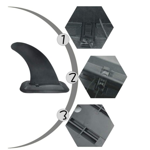 - Док-станція та плавник дошки для серфінгу знімні, а фіксована основа шпильки може міцно прикріпити водорозподільник до дошки для серфінгу. Фіксуючий штифт з мотузкою нелегко втратити.