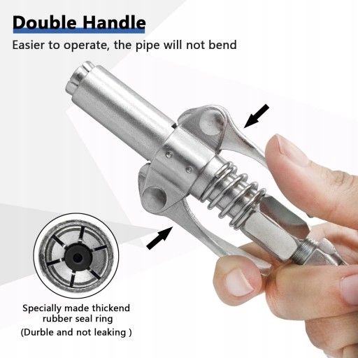 Наконечник нашого мастильного пістолета виготовлено з оцинкованої легованої сталі для більшої довговічності, товщі пружини забезпечують сильнішу силу блокування та запобігають витоку, більше немає мастила скрізь, немає відходів.