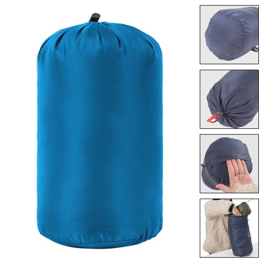 ОСОБЛИВОСТІ: Компресійний мішок для спального мішка на пружинній блискавці забезпечує конфіденційність і захищає ваш одяг від пролиття, просто натисніть, а потім затягніть стрічку, щоб закріпити його.