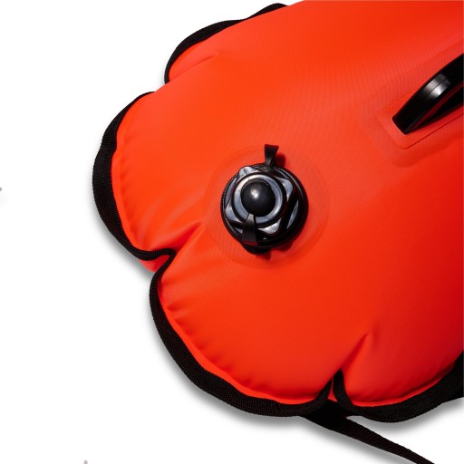 Великий, двокамерний страхувальний буй об'ємом 28 літрів, з сухою кишенею. Продукт з унікальними функціями, адаптований до реальних потреб триатлоністів і плавців на відкритій воді.