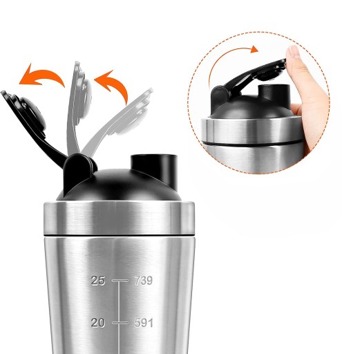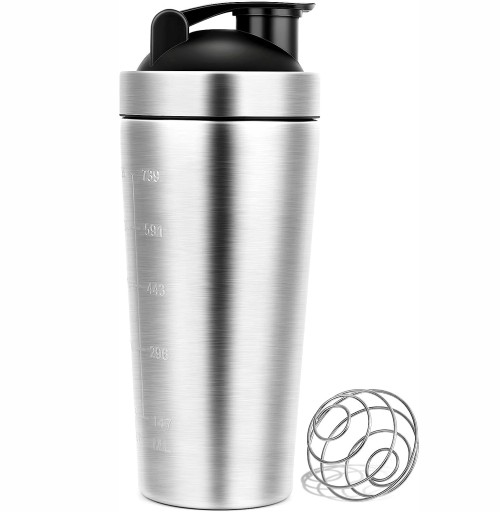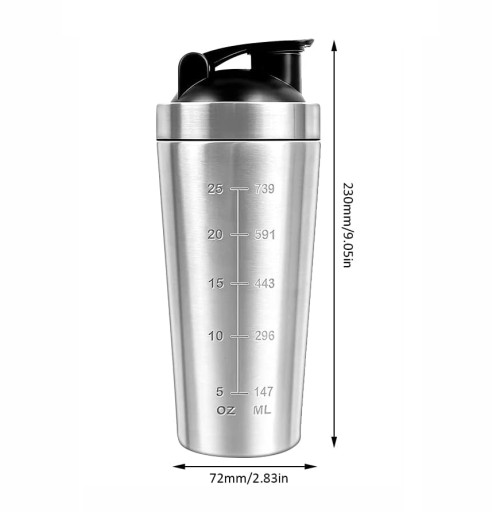 💪Висока якість: чашка виготовлена з двошарової нержавіючої сталі 304 для довговічності та має елегантну форму, яка легко поєднується з офісним і домашнім інтер’єром. Універсальний і позачасовий, це ідеальний шейкер з нержавіючої сталі для тренувань на ходу.