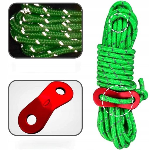 🏕️Розмір: кожна мотузка має довжину 4 метри та діаметр 4 мм. Кожна мотузка витримує до 200 кг. У комплект входить 10 мотузок для намету