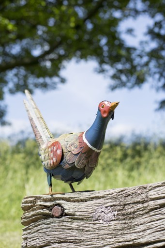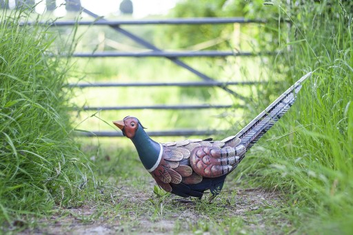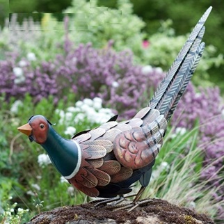 Металева фігурка фазана розписана вручну, а кожне перо витиснено з листа металу, завдяки чому фазан справляє враження дуже вишуканої прикраси саду. Фазани виглядають настільки переконливо, що навіть зблизька їх можна прийняти за справжніх птахів.