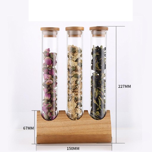 Широке застосування: набір скляних пробірок із підставкою можна широко використовувати в різних випадках, від аналізу наукових експериментів до щільного зберігання зернових продуктів і навіть для прикрас, таких як кухня, спальня тощо.