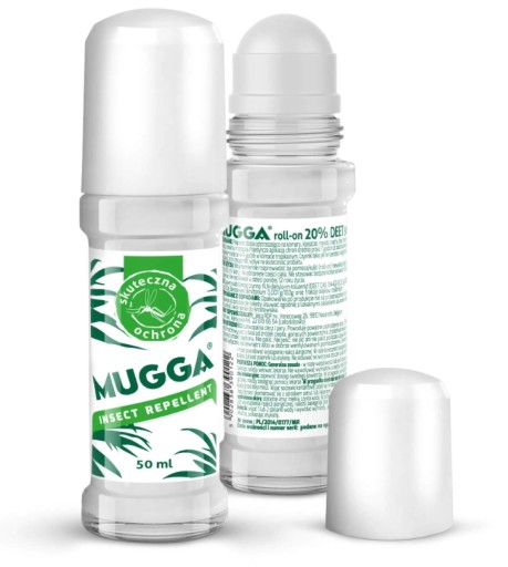 Mugga Roll-On 20% - препарат для безпосереднього нанесення на шкіру. Захищає від укусів комарів (тропічних і європейських), мошок, мух, кліщів і мошок. Мугга від комарів і кліщів в рулоні легко наноситься, дуже добре розподіляється і не залишає жирних слідів. Mugga 20 ідеально підходить як для тропічного, так і для європейського клімату і призначений в першу чергу для тих, хто хоче захистити себе від комах.