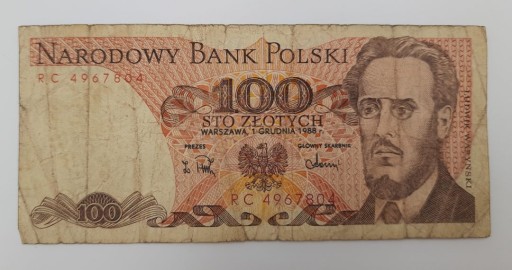 Стара колекційна банкнота Польща 100 злотих 1988 р
