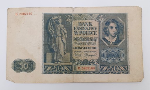 Стара колекційна банкнота Польща 50 злотих 1941 р