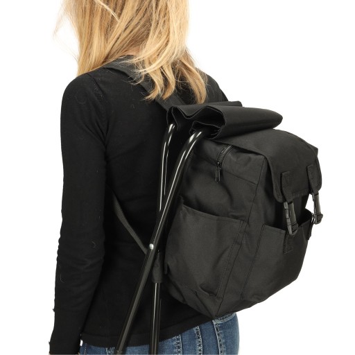 КРІСЛО ТУРИСТИЧНЕ РИБАЛЬСЬКЕ БЕЗ СПИНКИ, ЧОРНЕ, РЮКЗАК 80КГ