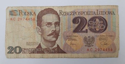 Стара колекційна банкнота Польща 20 злотих 1982 р