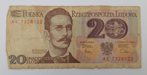 Стара колекційна банкнота Польща 20 злотих 1982 р