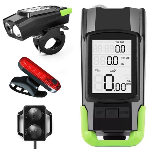 ✅ Повний велокомплект - передній ліхтар з вбудованим лічильником і звуковим сигналом і задній світлодіодний ліхтар.