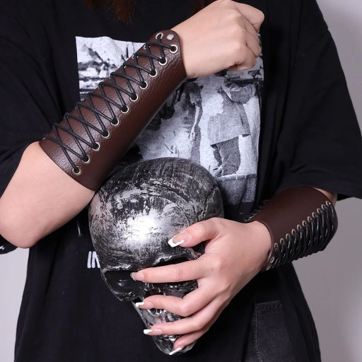 - Ці середньовічні браслети виготовлені зі штучної шкіри, зручної та міцної, яка зберігає стабільну форму, а також добре прилягає до руки, не стискаючись. Приходь і отримай ці круті панк-манжети.
