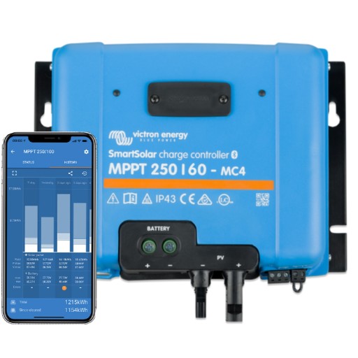 Контролер заряду 250/60-MC4. Напруга 12В, 24В, 36В, 48В вибирається автоматично. Інтерфейс BlueTooth дозволяє програмувати та контролювати через смартфон.