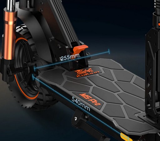 Скутер Kugoo Kirin M5 Pro має дуже широку підніжку. Це забезпечує комфорт і зручність водіння для людей з великими розмірами взуття.