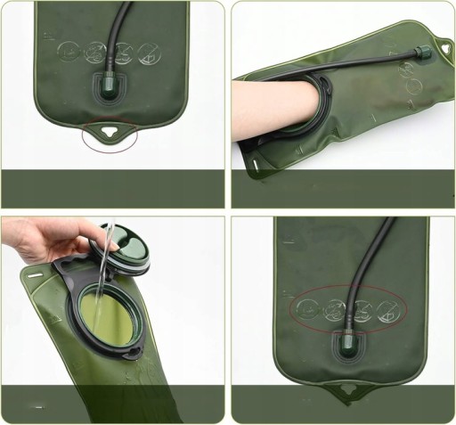Сумка для води має великий об’єм 2 л, достатньої для довготривалих видів спорту на свіжому повітрі, таких як походи, їзда на велосипеді, скелелазіння, альпінізм, кемпінг і катання на лижах. Портативний дизайн дозволяє тримати його в руці або повісити на стіну, коли незручно класти в рюкзак.