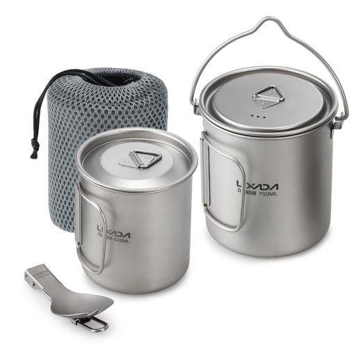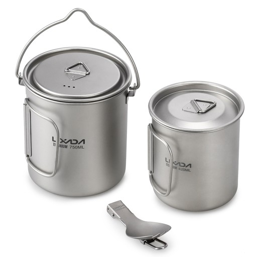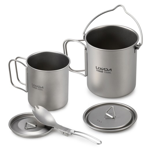 Набір із 3 предметів: повністю титановий набір включає глечик об’ємом 750 мл, кухоль об’ємом 420 мл і складну ложку, що ідеально підходить для кемпінгу, походів, подорожей, пригод на природі та виживання.