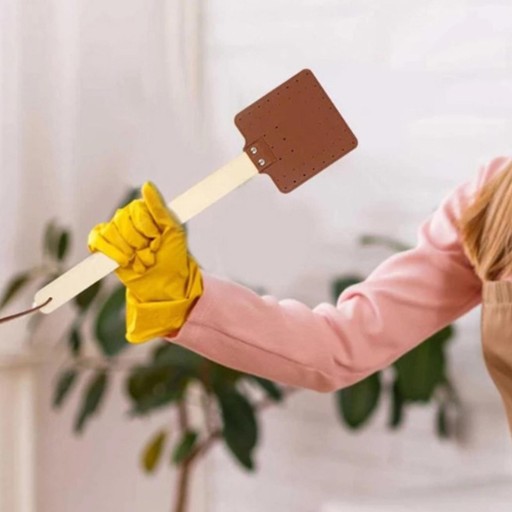 Міцна мухобойка: виготовлена з поліуретанової шкіри та дерева, ця мухобойка є більш ефективною, ніж дешеві тендітні весла