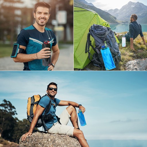 ❤️Зручно носити: пляшка з водою є водонепроникною, її можна скласти, сплющити або згорнути, і вона може стояти, коли вона наповнена. Ви можете носити його будь-де та будь-де. Дуже зручний.