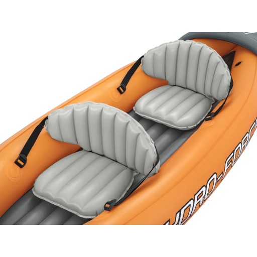 Двомісна надувна байдарка LITE-RAPID X2 від Bestway відмінне спорядження для купання на озерах, затоках, річках і каналів або під час літніх канікул біля моря Каяк o розміри 321 см х 88 см легко вміщує двох людей максимальна вага 160 кг Комфорт плавання забезпечать надувні сидіння зі спинками, посилені ременями, має м'яку подушку перекриття з внутрішньою двотавровою конструкцією, яка з’єднує верхню і нижню частину деякі з внутрішніми ременями Завдяки їм каяк не розгойдується і більш зручні на носі і на кормі ручки для перенесення Бостонські клапани дозволяють швидко інфляція та дефляція Для підтримки курсу i стабільність забезпечує занурений плавник, тобто меч, який працює як плавник Покращує стійкість і працює проти бокового вітру Байдарка виготовлена з міцного, довговічного ПВХ матеріалу.