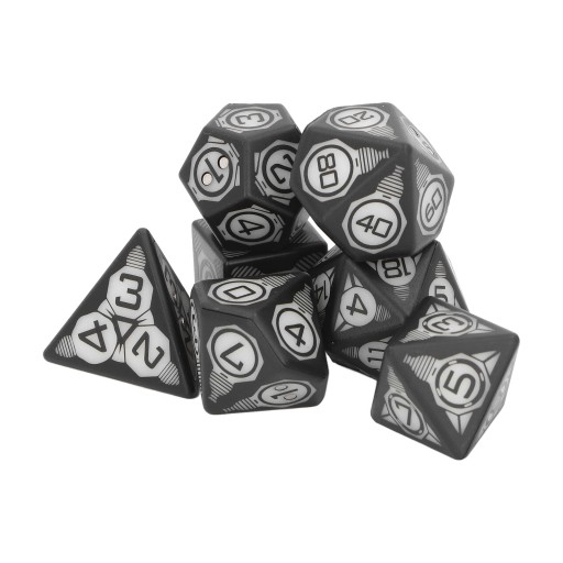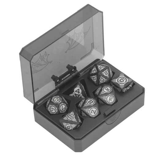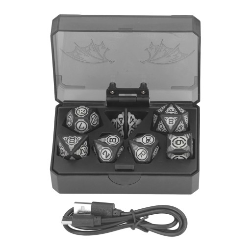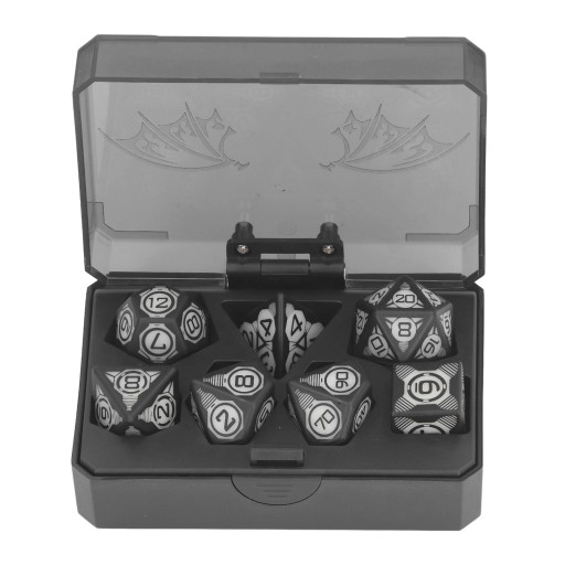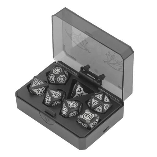 4. Кількість: набір кубиків містить 7 чорних кубиків, включаючи D4, D6, D8, D10 (двозначне), D9 (непарне), D12 і D20. Виведіть свою настільну гру на новий рівень.