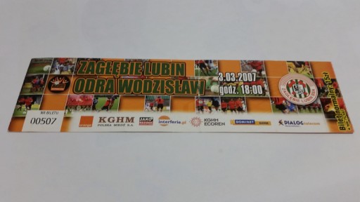 квиток ZAGŁĘBIE Lubin - ODRA Wodzisław 03.03.2007