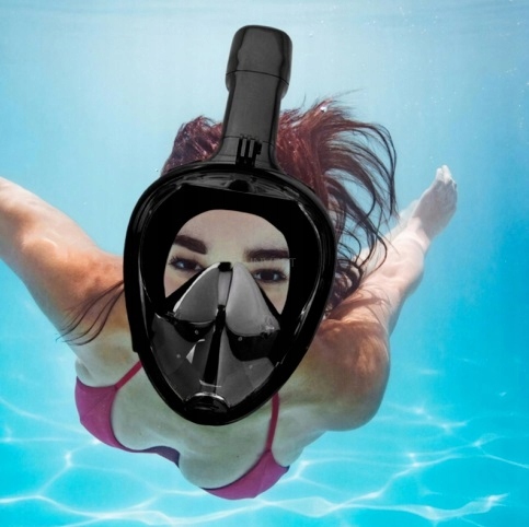 - маска для підводного плавання: повнолицева маска з трубкою, що дозволяє дихати через рот і ніс