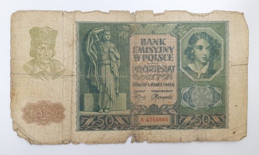 Стара колекційна банкнота Польща 50 злотих 1940 р