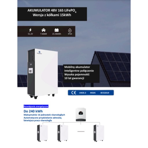 Компактний дизайн і проста установка роблять його надзвичайно зручним у використанні. Просте підключення до інвертора та зв'язок за допомогою протоколу Modbus забезпечують безперебійну та безперебійну роботу. На складі є можливість перегляду параметрів роботи як на інверторі, так і на вбудованому дисплеї. Використання елементів з використанням літій-залізо-фосфатної технології забезпечує максимальну безпеку та мінімальний ефект пам'яті при циклічній роботі.