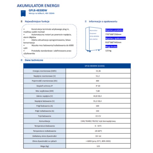 - Ємність: 300Ah/15.36kWh