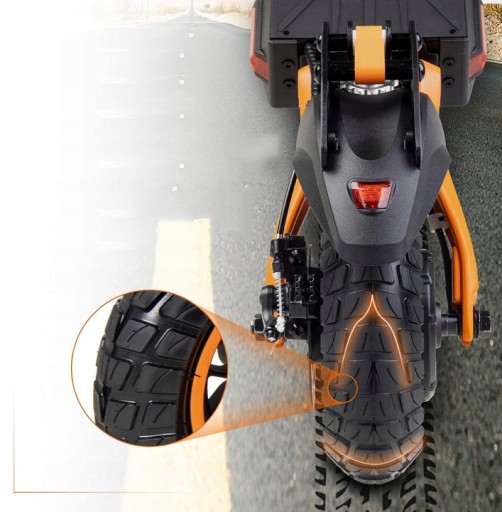 9-дюймові пневматичні шини для бездоріжжя, велика площа покриття, відсутність бруду в дощові дні, хороша амортизація, хороше зчеплення, відсутність страху в складних дорожніх умовах, тому ви можете бути впевнені, що зможете їздити, коли захочете.