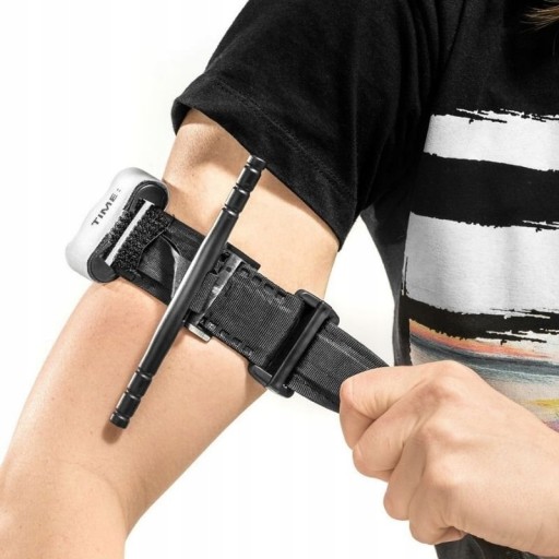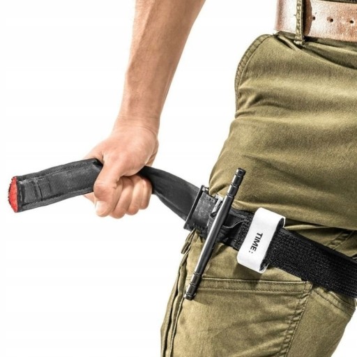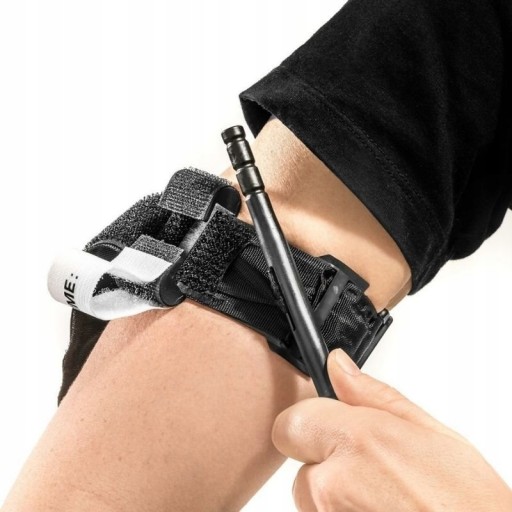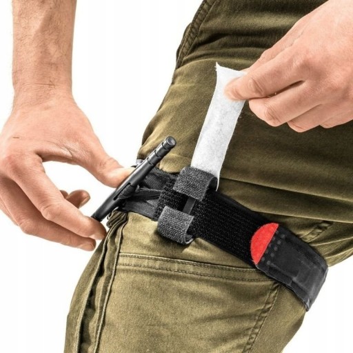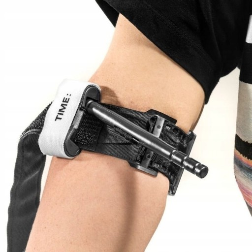 - Довга липучка дозволяє легко послабити бинт, накласти його на пошкоджену кінцівку, а потім однією рукою відрегулювати довжину бинта (затягнути) і затягнути затискач паличкою до зупинки кровотечі.