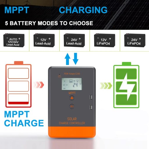 POwMr MPPT Сонячний зарядний пристрій Контролер 40A 12 В 24 В Контролер сонячної панелі 100 В Фотоелектричний вхід РК-дисплей Різні режими керування навантаженням POW-Keeper1240