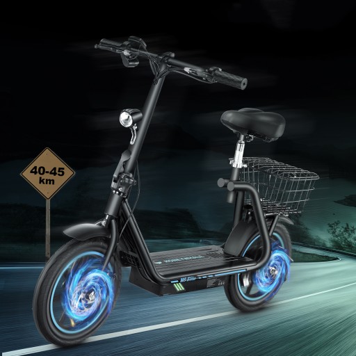 M5 Elite оснащений екраном високої роздільної здатності, на якому відображається швидкість, пробіг і рівень заряду батареї, тож ви завжди можете бути в курсі стану свого обладнання. Додаткові практичні конструкції заднього кошика дозволяють легше переносити речі. Його конструкція з вуглецевої сталі може витримувати вагу до 120 кг, оскільки він призначений для дорослих і підлітків.