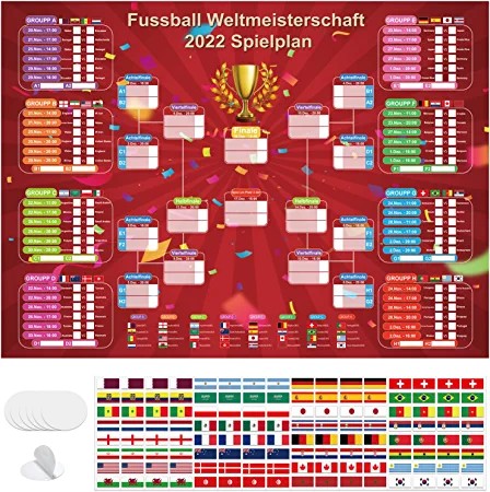 - Розклад матчів Чемпіонату світу з футболу 2022 - 2 плакати з розкладом футбольних турнірів (38,3 дюйма x 13,75 дюйма) поєднуються, щоб створити великий календар з розкладом матчів чемпіонату світу (38,3 дюйма x 27,5 дюйма) великий світ плакатів з розкладом чемпіонату, ідеально підходить для прикраси бару, ресторану, офіс, спортивний клуб, готель та інші місця.