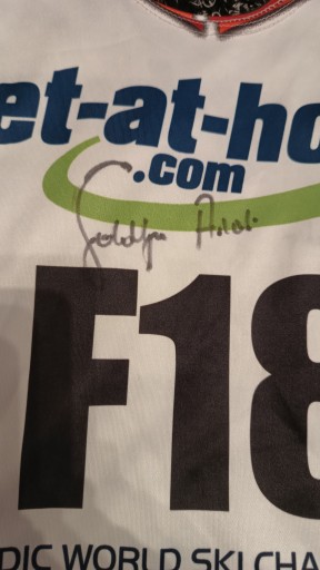 Продам пластрон з автографом Андреаса Гольдбергера. Пластрон підписаний з двох сторін, тобто на ньому два автографи.