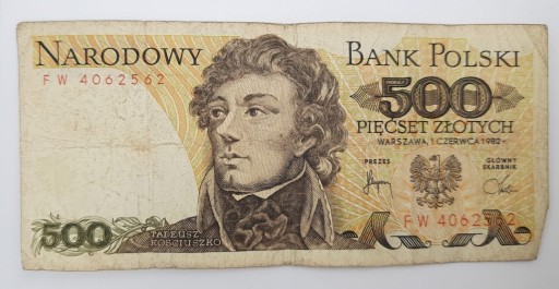 Стара колекційна банкнота Польща 500 злотих 1982 р
