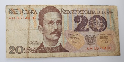 Стара колекційна банкнота Польща 20 злотих 1982 р