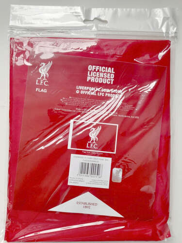 Стан: ДУЖЕ ДОБРЕ (новий продукт): Великий прапор, випущений англійським футбольним клубом «Ліверпуль» (розміри 152 x 91 см). На ньому зображено герб клубу проти його кольорів. На одній із менших сторін прапор має білий шов разом із двома металевими кільцями з отворами, які дозволяють повісити його на древку чи древку. Він виготовлений з поліестеру і поміщений в упаковку з гербом ФК Ліверпуль і голограмою клубу. Це офіційний сувенір клубу Енфілд Роуд.