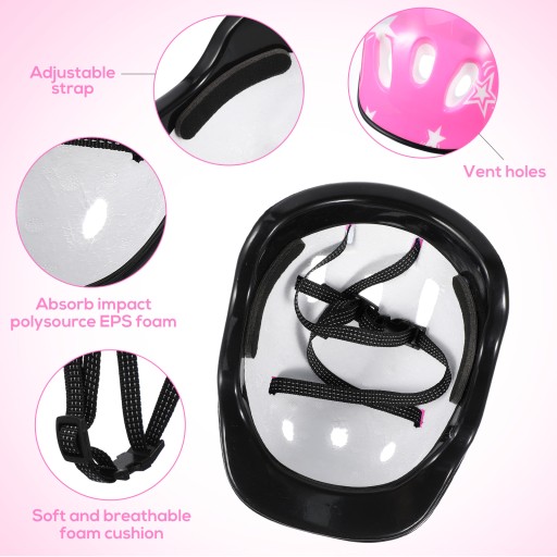 - Цей набір захисних шоломів був спеціально розроблений, щоб забезпечити вашим дітям чудовий захист під час катання на скейтборді, ковзанах, самокаті та багатьох інших видах спорту на відкритому повітрі. Матеріал робить його зручним у носінні та нелегким для ковзання.